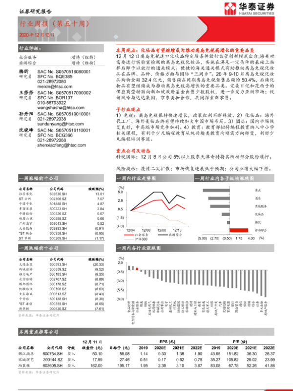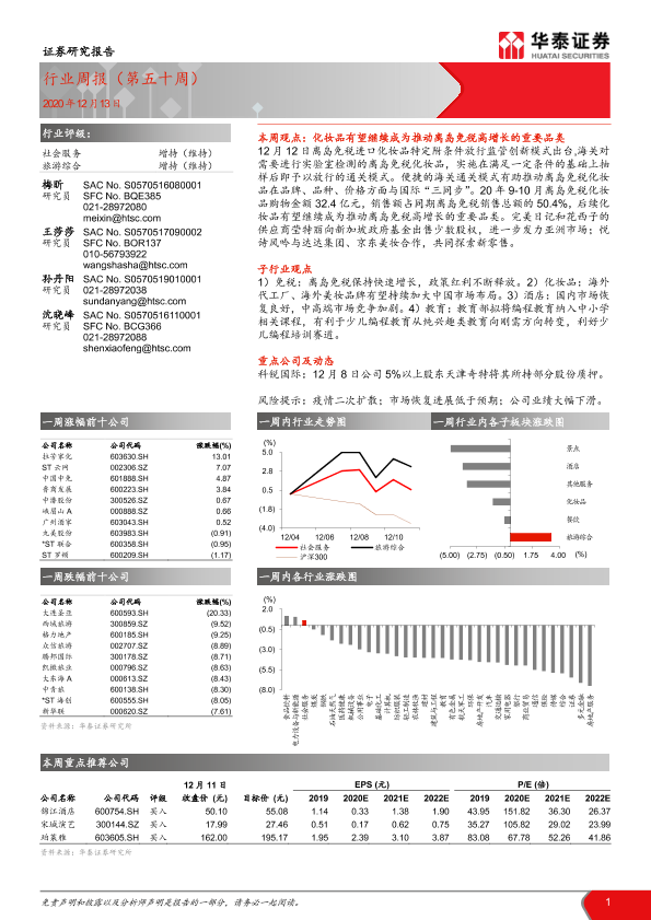【华泰证券】【20201213】社会服务行业周报(第五十周)-10页