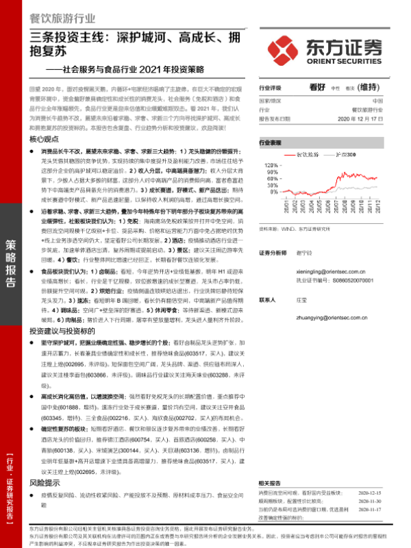 【东方证券】【20201217】社会服务与食品行业2021年投资策略:三条投资主线:深护城河、高成长、拥抱复苏-45页