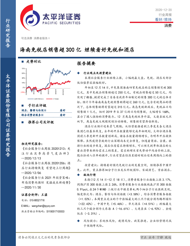 【太平洋证券】【20201220】消费行业周报:海南免税店销售超300亿 继续看好免税和酒店-13页