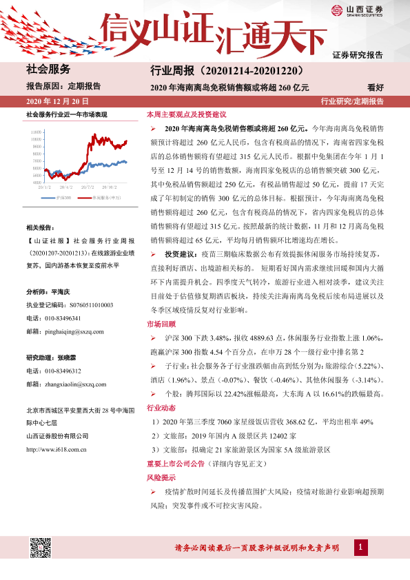【山西证券】【20201220】社会服务行业周报:2020年海南离岛免税销售额或将超260亿元-9页