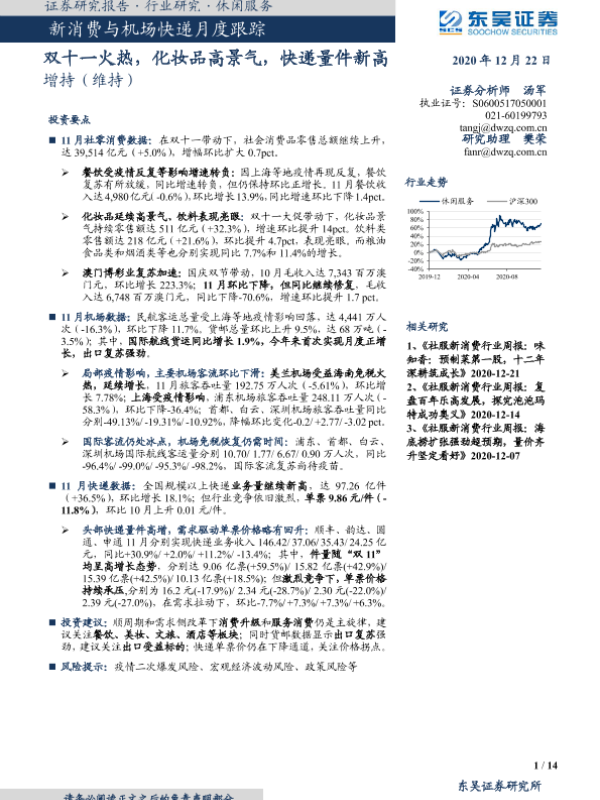 【东吴证券】【20201222】新消费与机场快递月度跟踪-14页