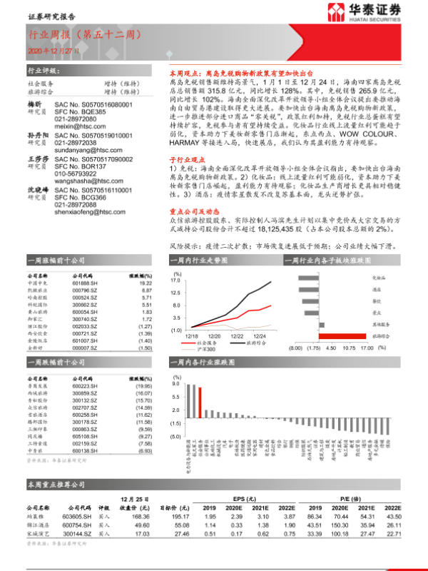 【华泰证券】【20201227】社会服务行业周报(第五十二周)-8页
