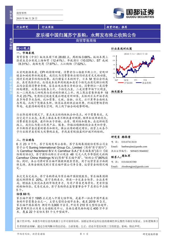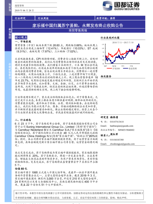 【国都证券】【20190628】商贸零售周报:家乐福中国归属苏宁易购,永辉发布终止收购公告-3页