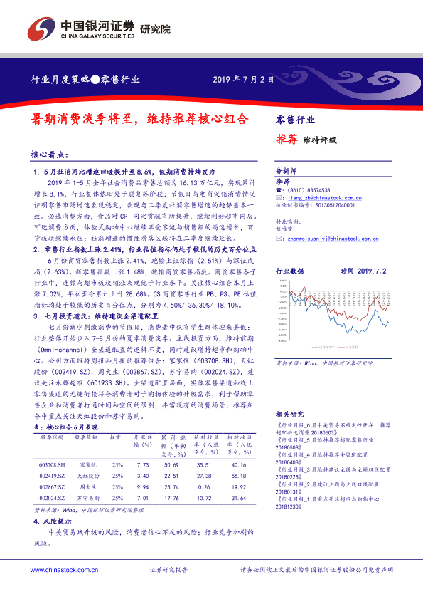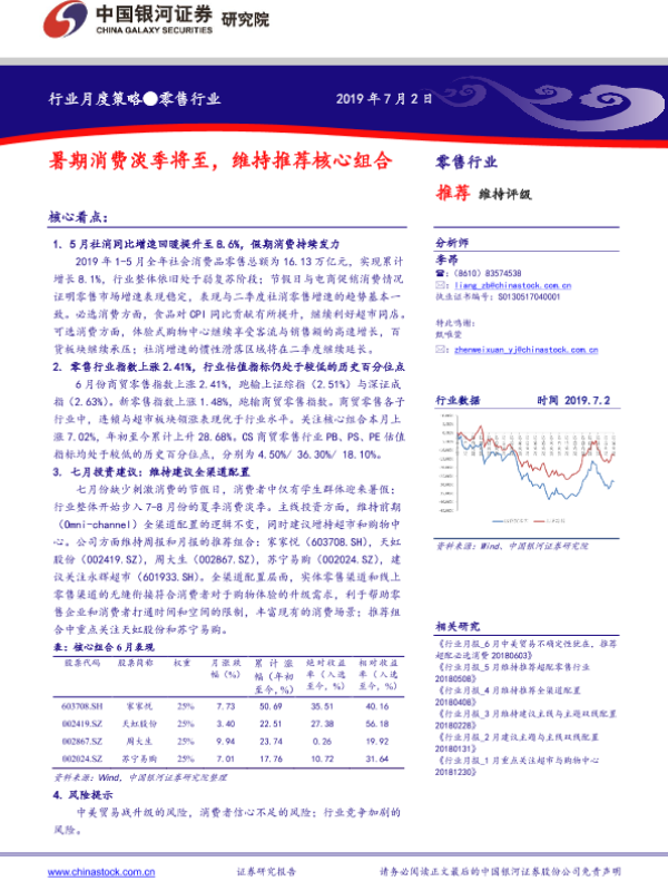 【银河证券】【20190702】零售行业月度策略:暑期消费淡季将至,维持推荐核心组合-18页