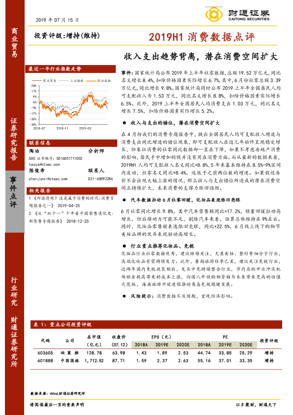 【财通证券】【20190715】2019H1消费数据点评:收入支出趋势背离,潜在消费空间扩大-3页