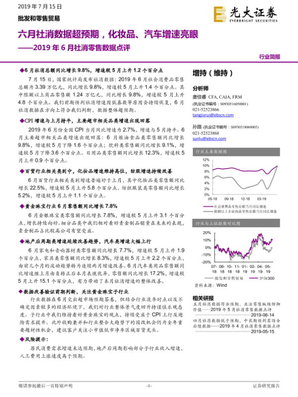 【光大证券】【20190715】2019年6月社消零售数据点评-6页