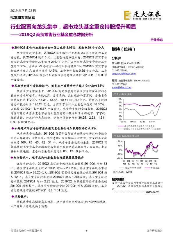 【光大证券】【20190722】2019Q2商贸零售行业基金重仓数据分析-13页