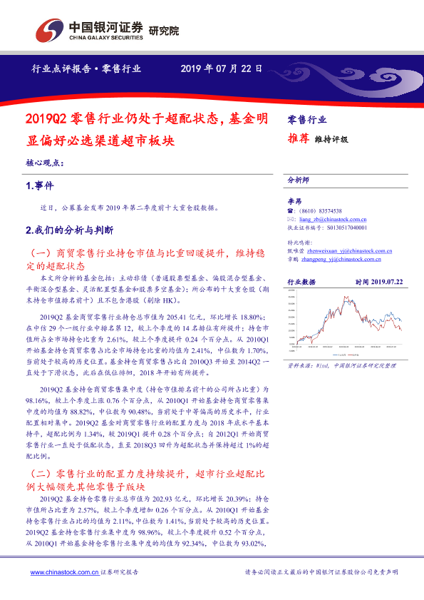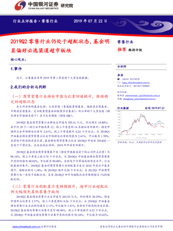 【银河证券】【20190722】2019Q2零售行业仍处于超配状态,基金明显偏好必选渠道超市板块-11页