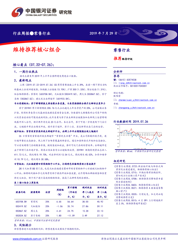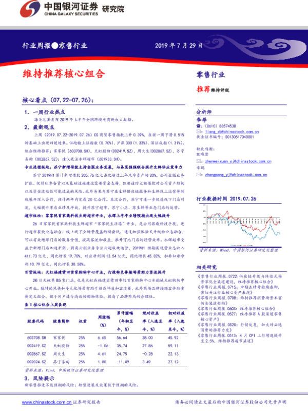 【银河证券】【20190729】零售行业周报:维持推荐核心组合-30页