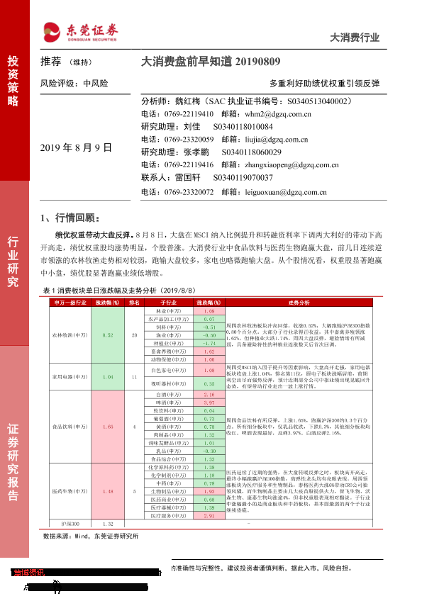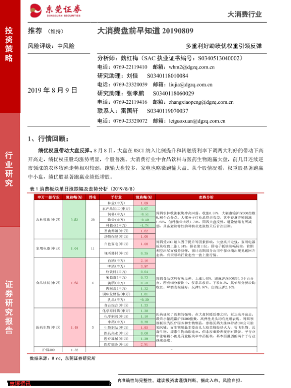 【东莞证券】【20190809】大消费盘前早知道:多重利好助绩优权重引领反弹-5页