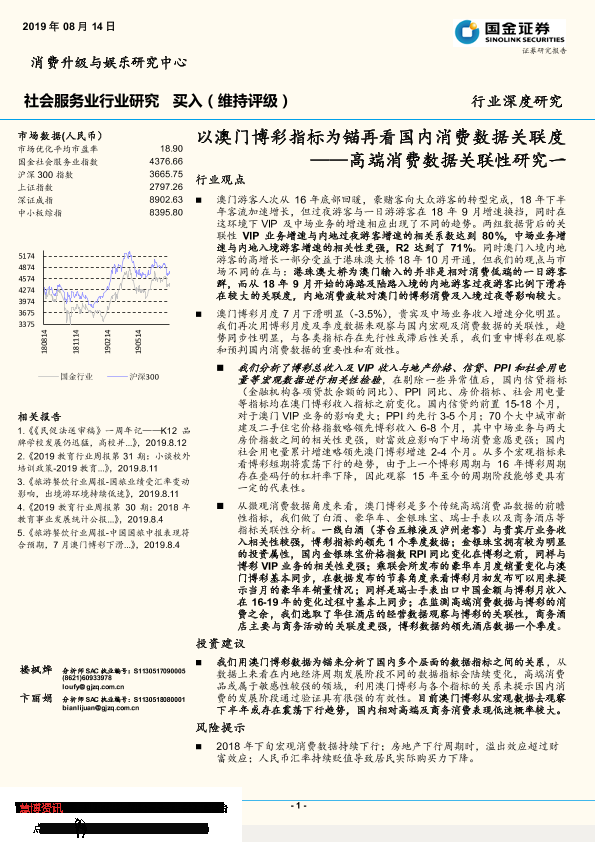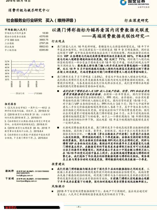 【国金证券】【20190814】社会服务业行业研究:高端消费数据关联性研究一-以澳门博彩指标为锚再看国内消费数据关联度-18页