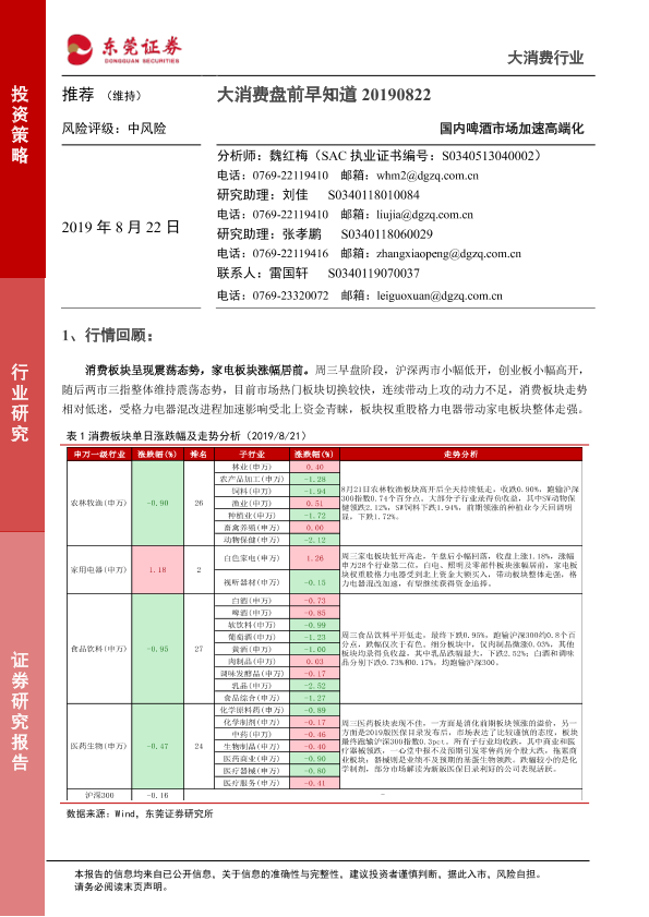 【东莞证券】【20190822】大消费盘前早知道:国内啤酒市场加速高端化-6页
