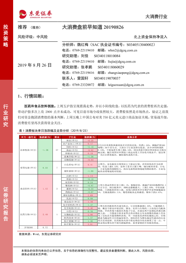 【东莞证券】【20190826】大消费盘前早知道:北上资金保持净流入-7页