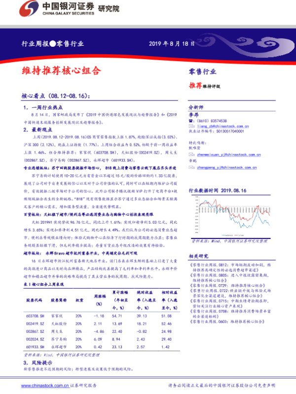 【银河证券】【20190818】零售行业周报:维持推荐核心组合-30页
