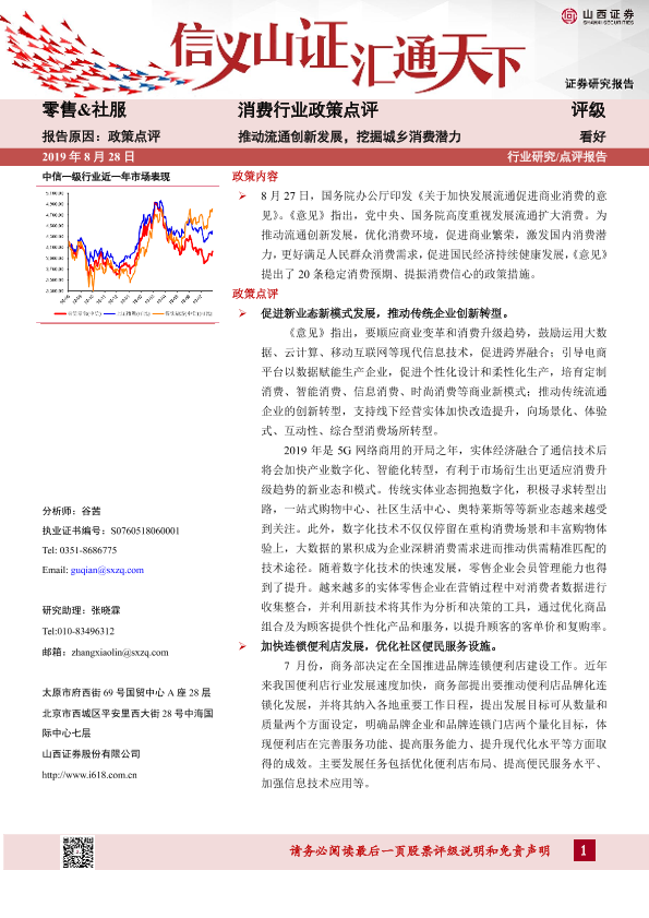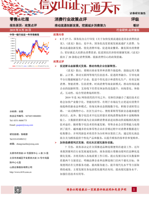 【山西证券】【20190828】消费行业政策点评:推动流通创新发展,挖掘城乡消费潜力-4页