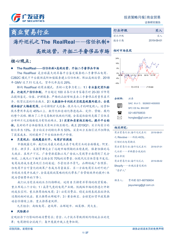 【广发证券】【20190901】海外巡礼之The RealReal——信任机制+高效运营,开拓二手奢侈品市场-27页