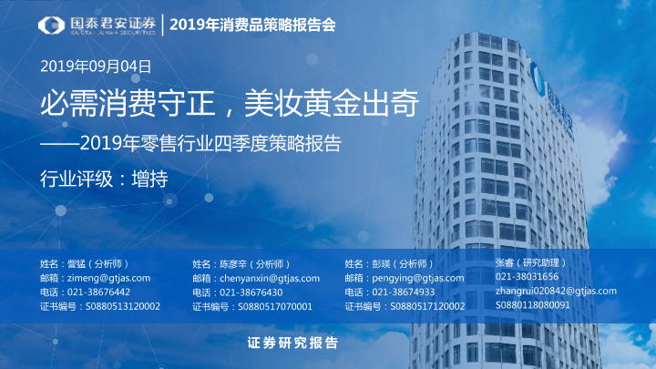 【国泰君安证券】【20190904】2019年零售行业四季度策略报告:必需消费守正,美妆黄金出奇-48页