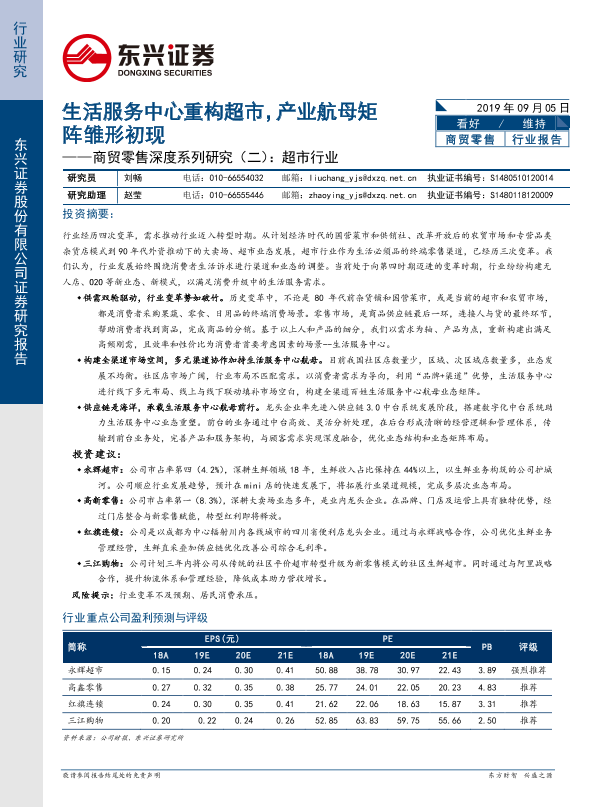 【东兴证券】【20190905】商贸零售行业深度系列研究(二):超市行业:生活服务中心重构超市,产业航母矩阵雏形初现-43页