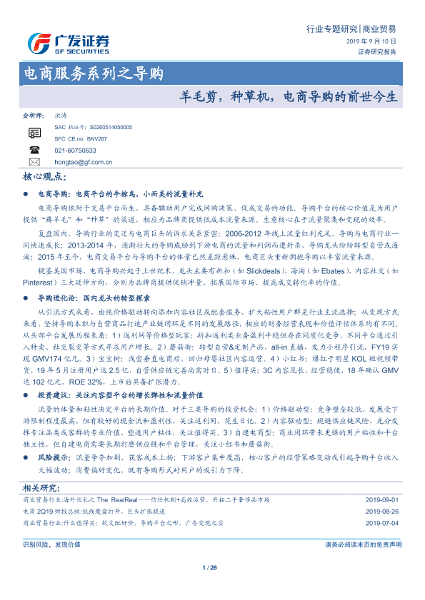 【广发证券】【20190910】电商服务系列之导购-羊毛剪,种草机,电商导购的前世今生-26页