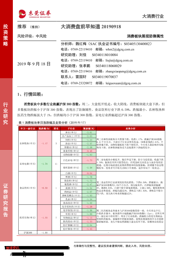 【东莞证券】【20190918】大消费盘前早知道:消费板块展现防御属性-5页