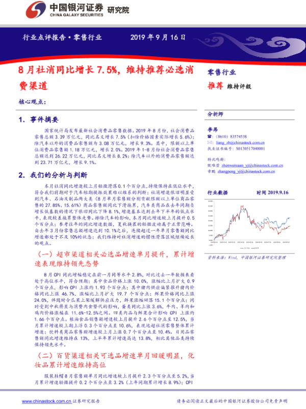 【银河证券】【20190916】8月社消同比增长7.5%,维持推荐必选消费渠道-4页