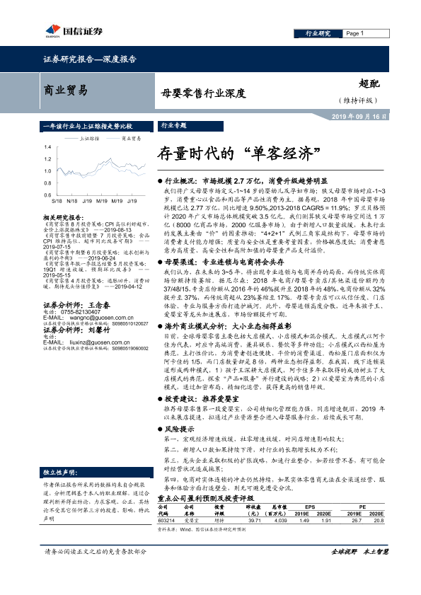 【国信证券】【20190916】母婴零售行业深度:存量时代的“单客经济”-22页