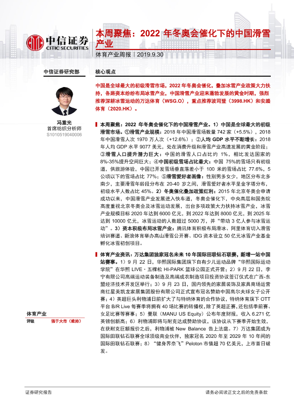 【中信证券】【20190930】2022年冬奥会催化下的中国滑雪产业-25页