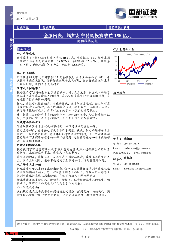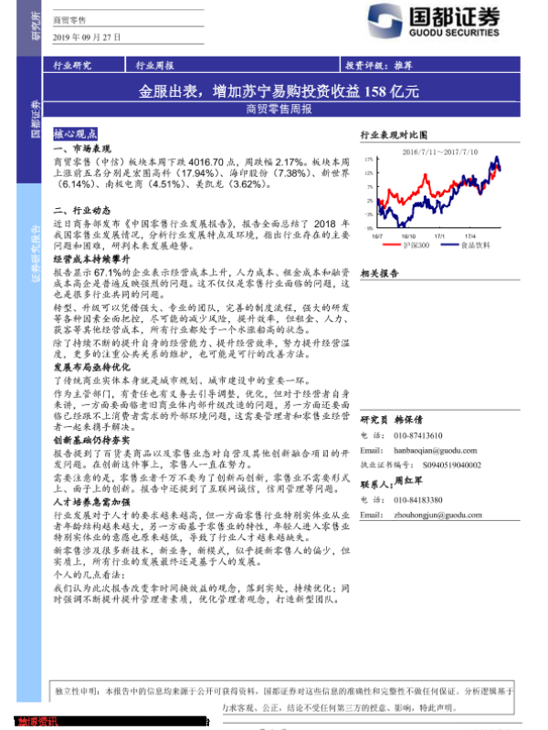 【国都证券】【20190927】商贸零售周报:金服出表,增加苏宁易购投资收益158亿元-3页