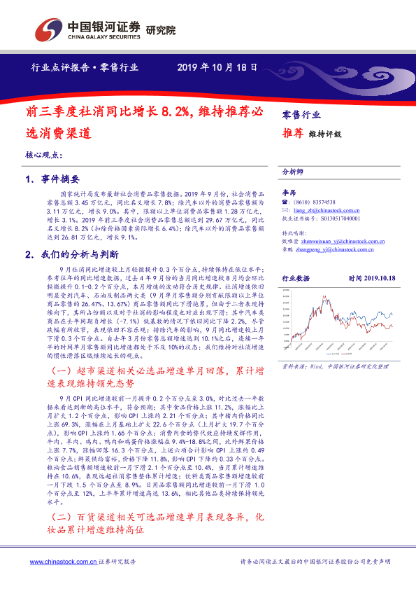 【银河证券】【20191018】零售行业:前三季度社消同比增长8.2%-4页