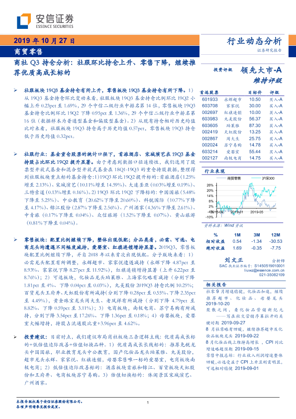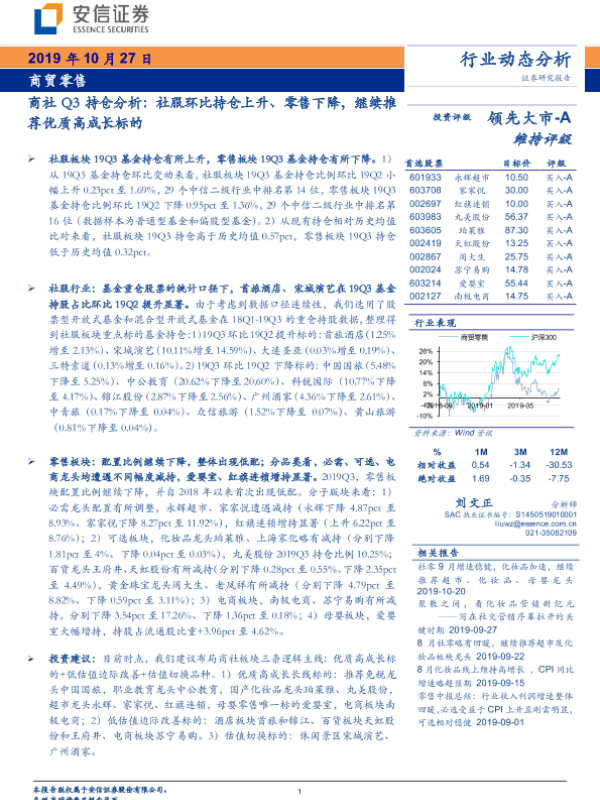 【安信证券】【20191027】商社Q3持仓分析:社服环比持仓上升、零售下降,继续推荐优质高成长标的-21页