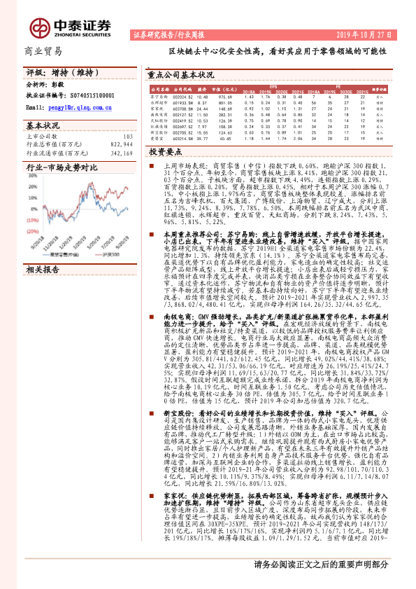 区块链 商业贸易 行业周报 证券研究报告 零售行业