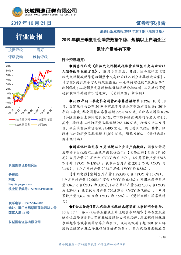 【长城国瑞证券】【20191021】2019年前三季度社会消费数据平稳,规模以上白酒企业累计产量略有下滑-28页