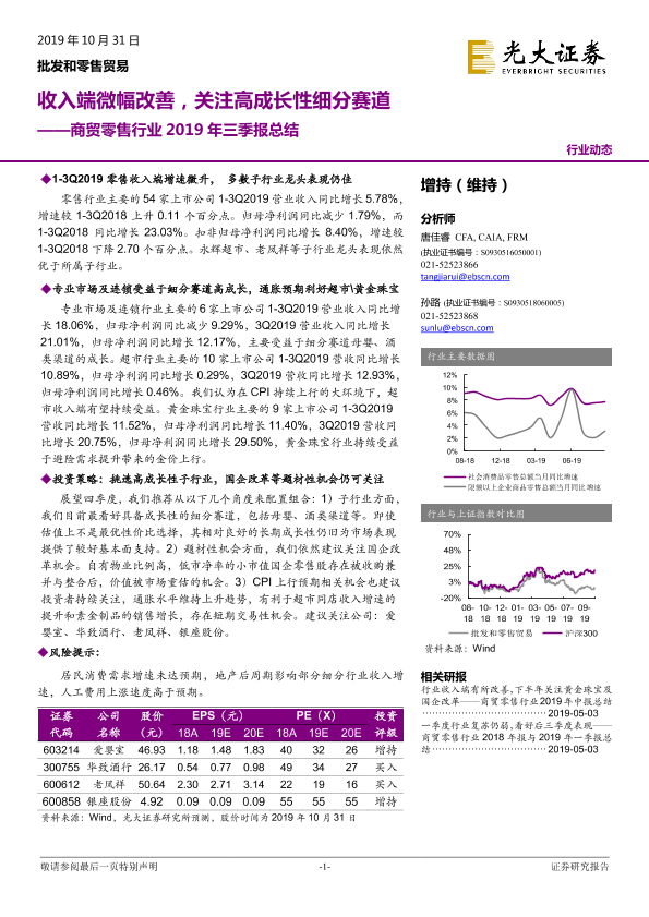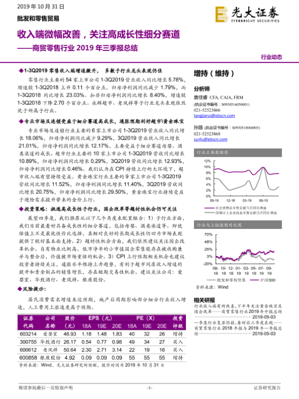 【光大证券】【20191031】商贸零售行业2019年三季报总结:收入端微幅改善,关注高成长性细分赛道-22页