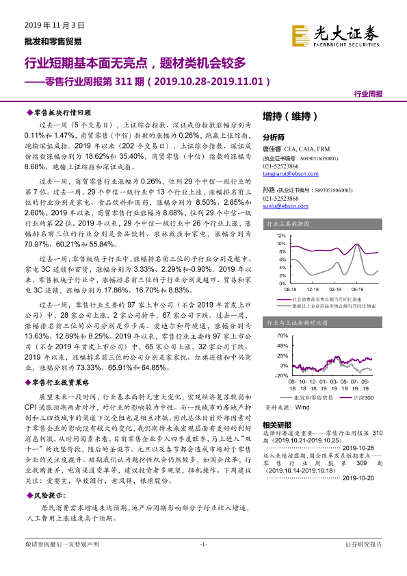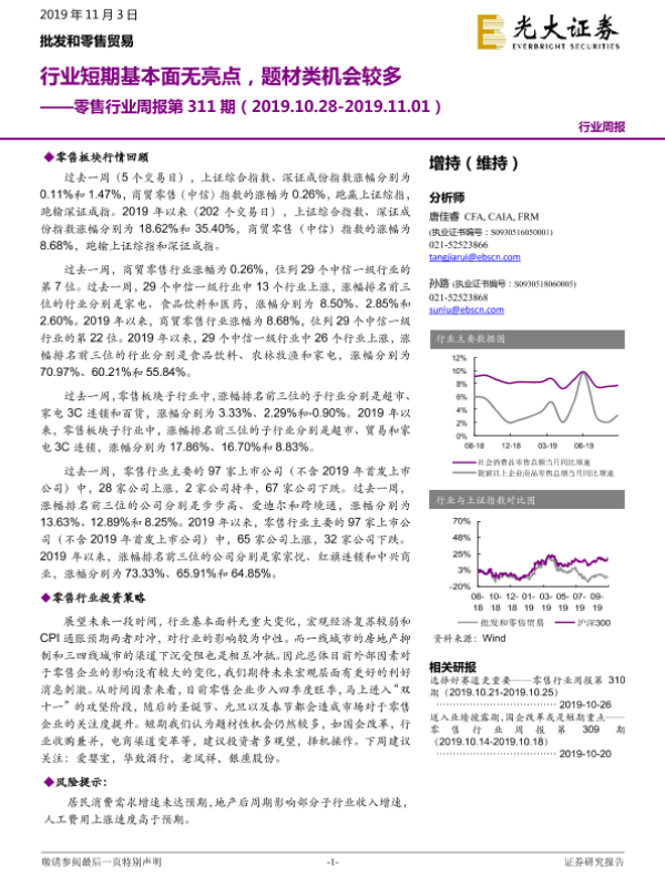 【光大证券】【20191103】零售行业周报第311期:行业短期基本面无亮点,题材类机会较多-10页