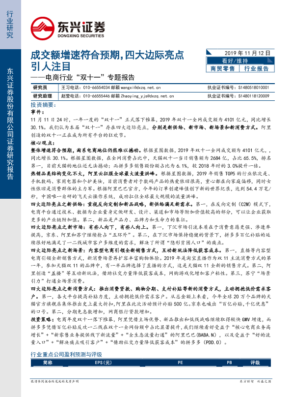 【东兴证券】【20191112】电商行业“双十一”专题报告:成交额增速符合预期,四大边际亮点引人注目-15页