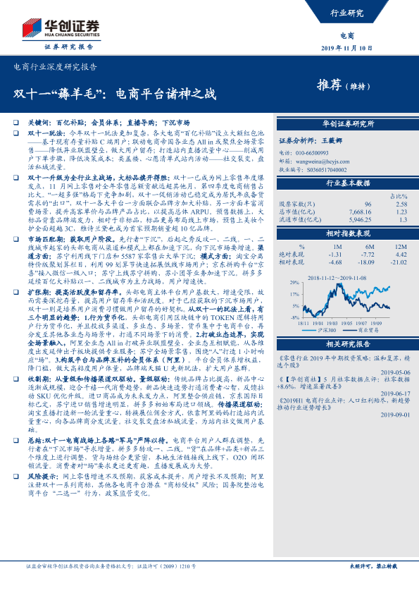【华创证券】【20191110】电商行业深度研究报告:双十一“薅羊毛”:电商平台诸神之战-24页