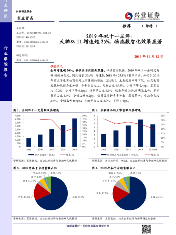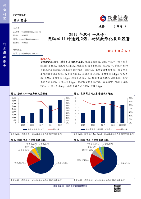 【兴业证券】【20191112】2019年双十一点评:天猫双11增速超25%,物流数智化效果显著-7页