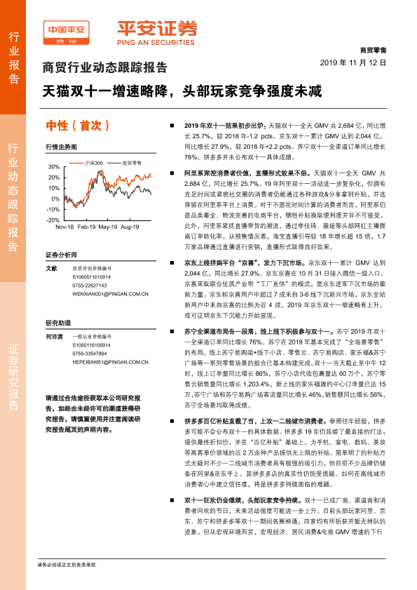 【平安证券】【20191112】商贸行业动态跟踪报告:天猫双十一增速略降,头部玩家竞争强度未减-11页