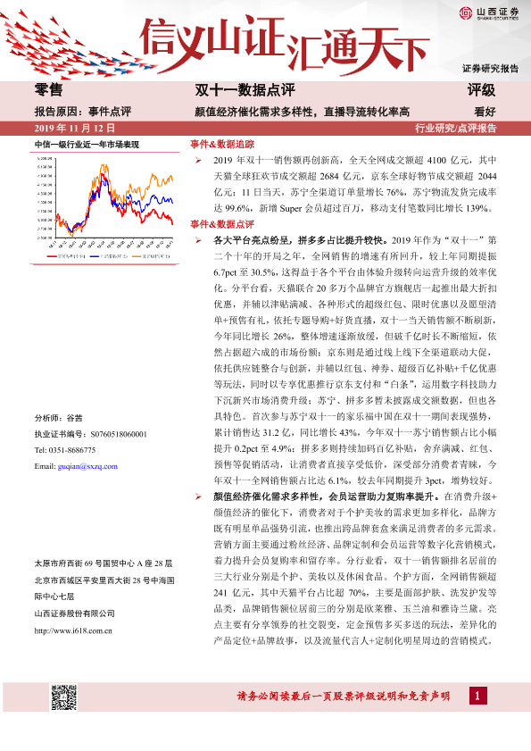 【山西证券】【20191112】零售双十一数据点评:颜值经济催化需求多样性,直播导流转化率高-4页
