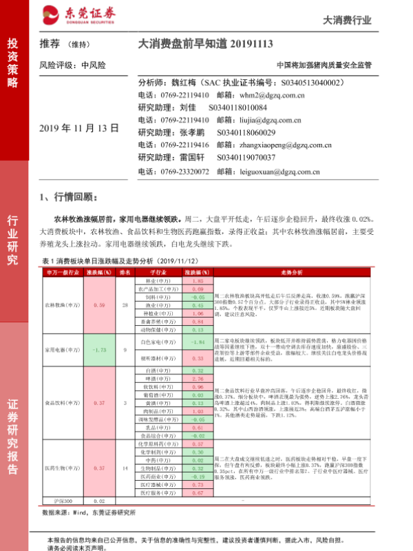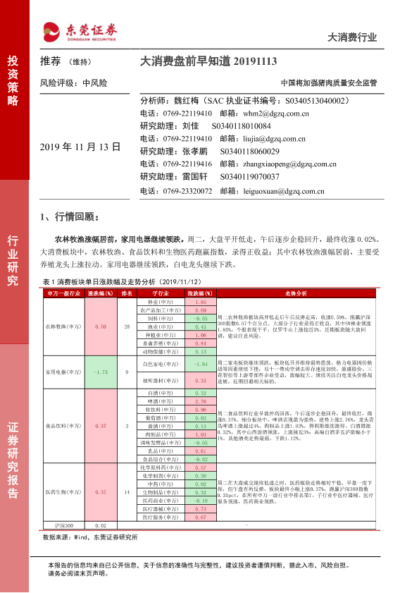 【东莞证券】【20191113】大消费盘前早知道:中国将加强猪肉质量安全监管-5页