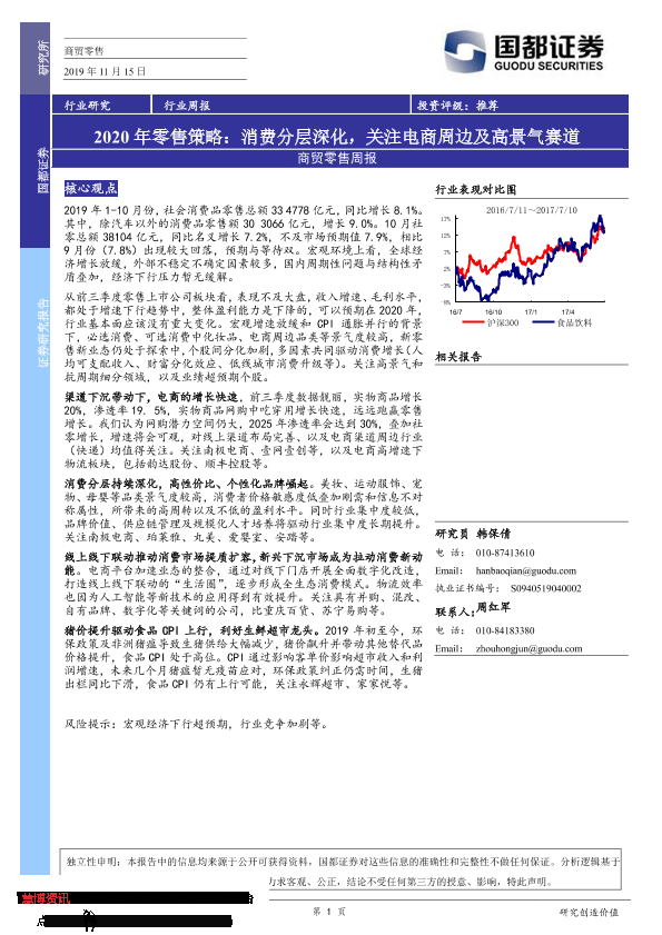 【国都证券】【20191115】2020年零售策略:消费分层深化,关注电商周边及高景气赛道-2页