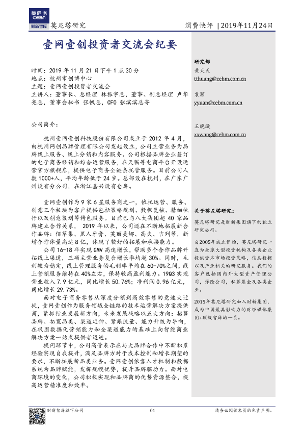 【莫尼塔研究】【20191124】壹网壹创投资者交流会纪要-16页