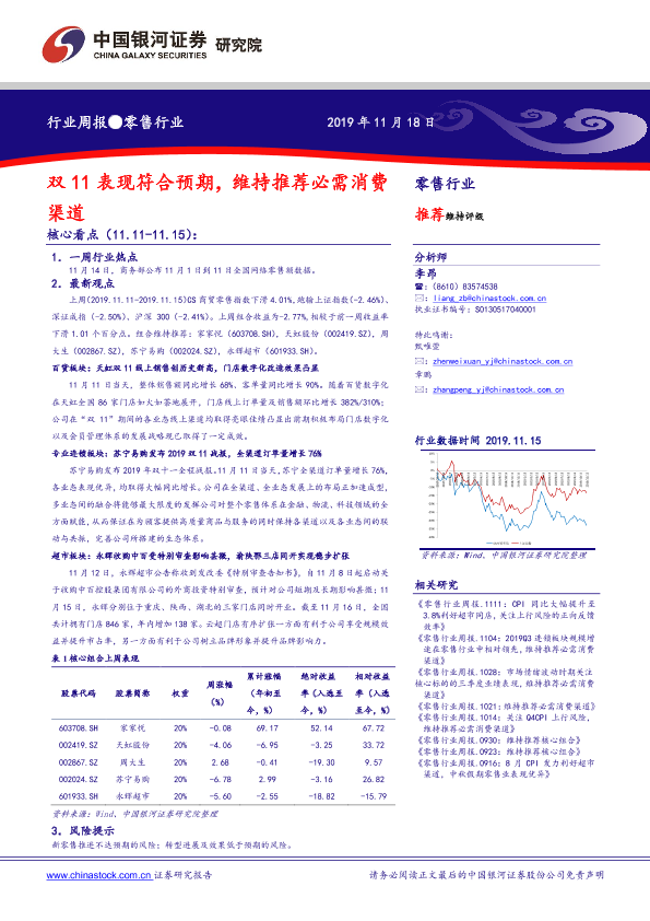 【银河证券】【20191118】零售行业周报:双11表现符合预期,维持推荐必需消费渠道-31页
