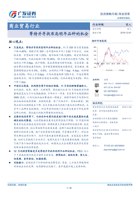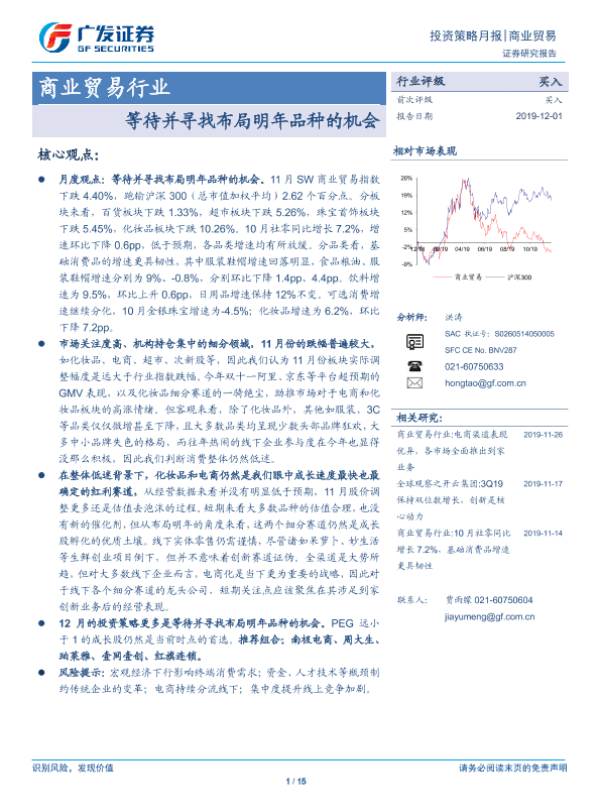 【广发证券】【20191201】商业贸易行业投资策略月报:等待并寻找布局明年品种的机会-15页