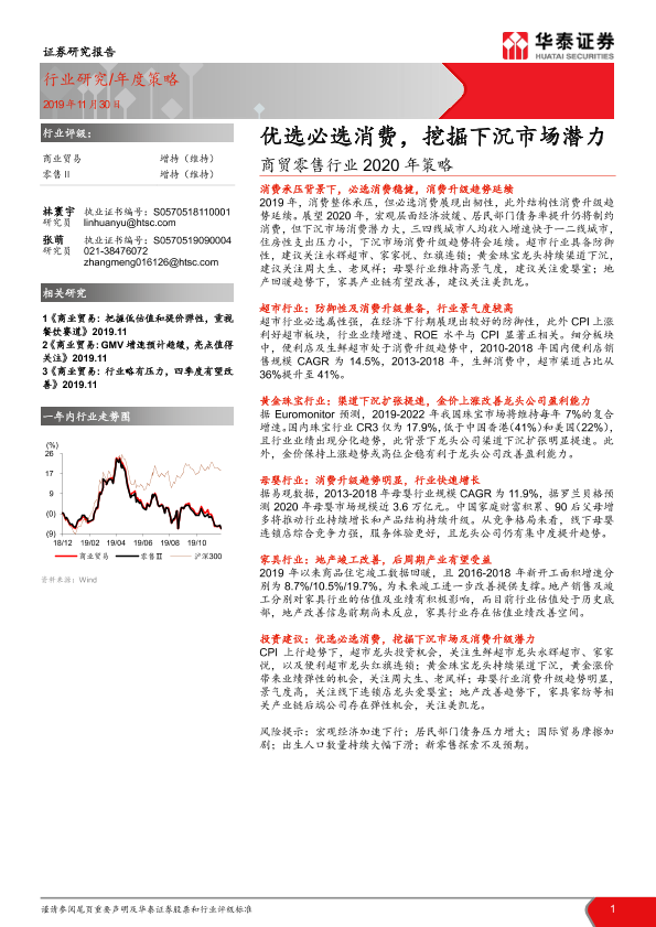 【华泰证券】【20191130】商贸零售行业2020年策略:优选必选消费,挖掘下沉市场潜力-26页