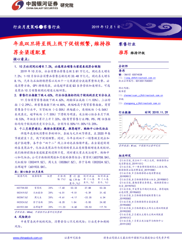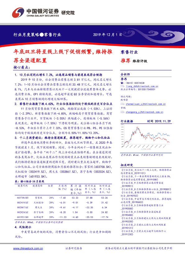 【银河证券】【20191201】零售行业月度策略:年底双旦将至线上线下促销频繁,维持推荐全渠道配置-18页