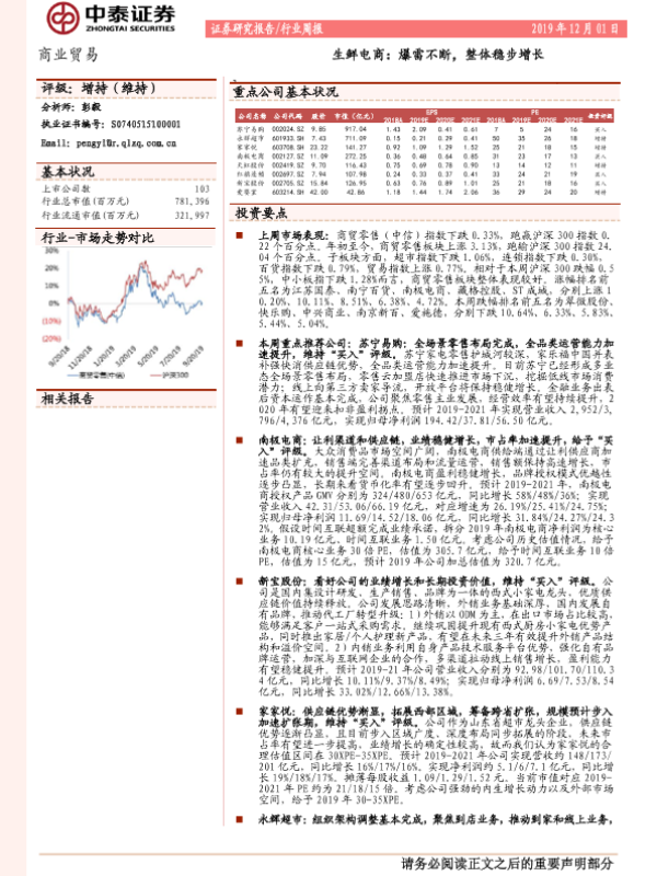 【中泰证券】【20191201】商业贸易行业周报:生鲜电商:爆雷不断,整体稳步增长-17页