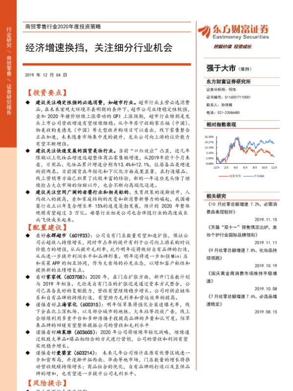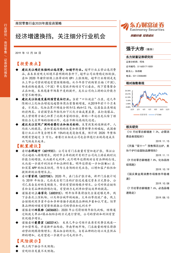 【东方财富证券】【20191204】商贸零售行业2020年度投资策略:经济增速换挡,关注细分行业机会-26页