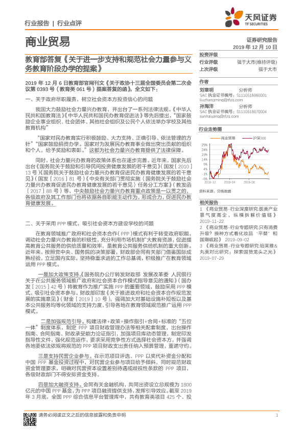 【天风证券】【20191210】教育部答复关于进一步支持和规范社会力量参与义务教育阶段办学的提案-4页