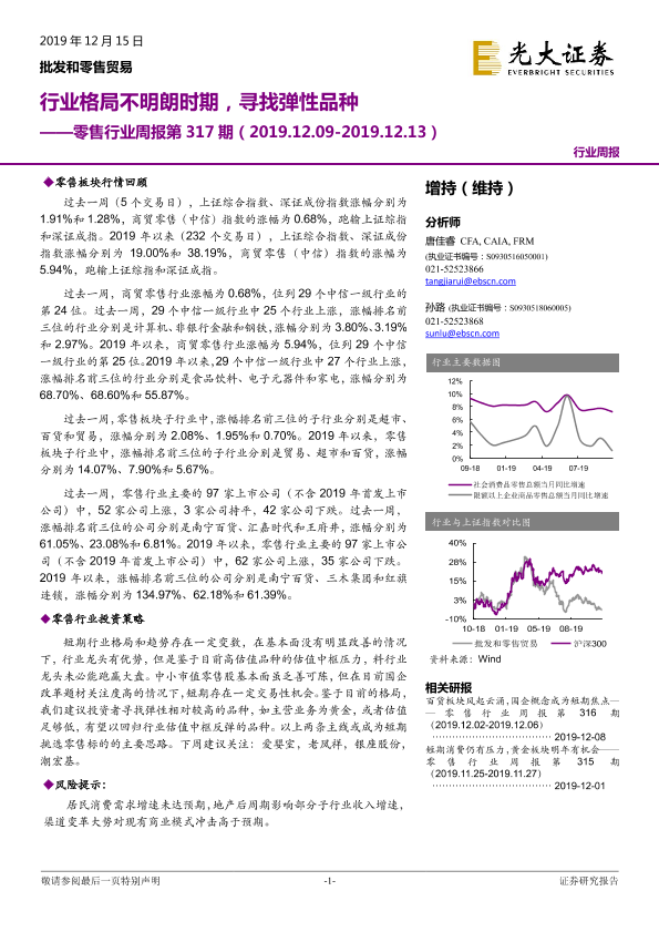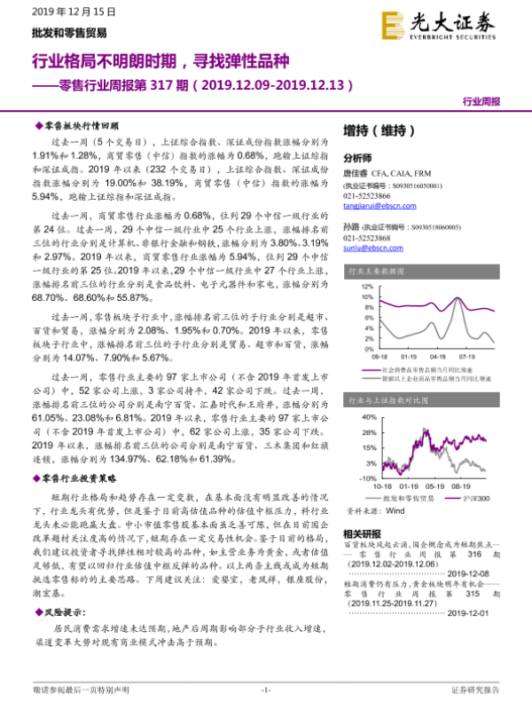【光大证券】【20191215】零售行业周报第317期:行业格局不明朗时期,寻找弹性品种-10页